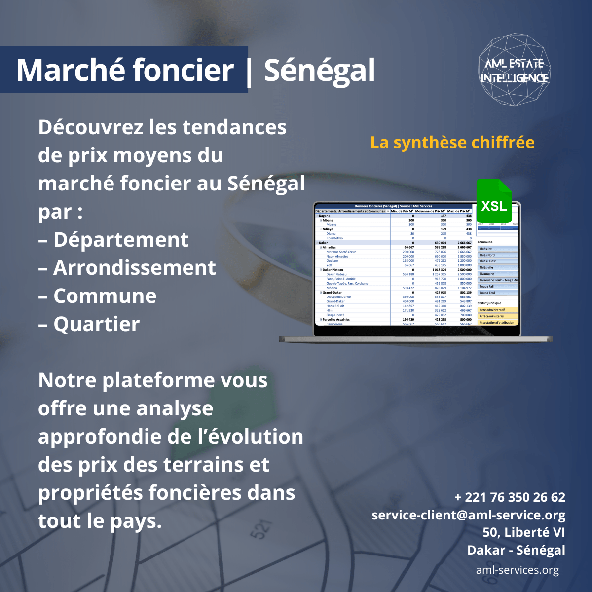 Un fichier Excel agrégeant les tendances de prix du marché foncier au Sénégal (Mise à jour Décembre 2025)